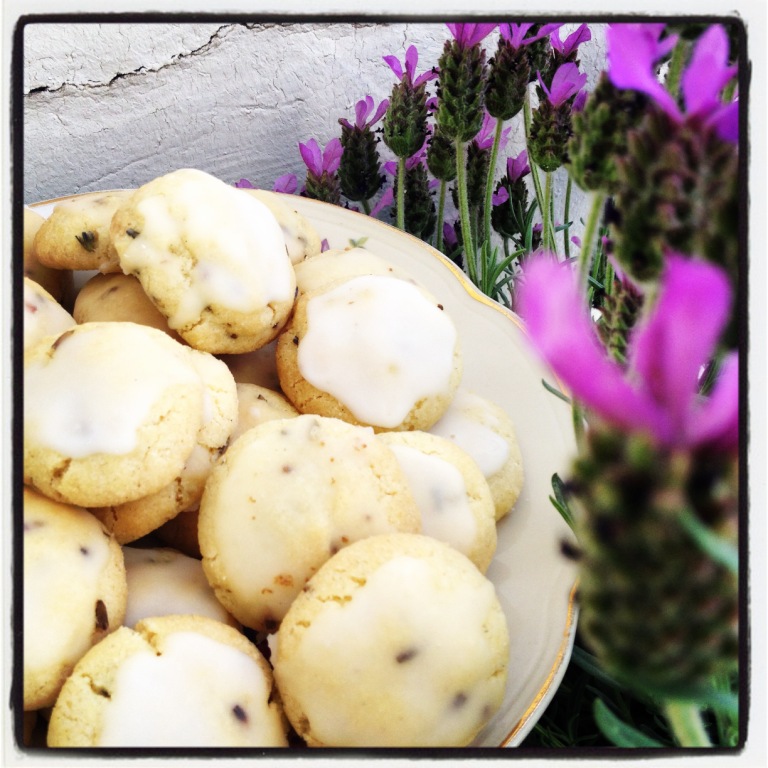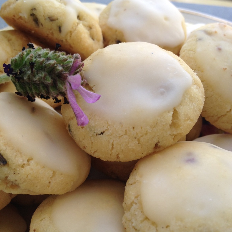 In Leilas Rezept werden die Kekse nach dem Abkühlen nur noch mit Puderzucker bestreut. Ich bestreiche sie aber lieber mit einem leichten Zitronenguss, denn die feine Säure passt wunderbar zu der intensiven Süße der Plätzchen und nimmt dem Lavendel etwas von seiner Dominanz. Dadurch entsteht eine Kombination, die so ungewöhnlich wie süchtig machend ist: Beim ersten Bissen weitet man noch erstaunt die Augen, ist aber so neugierig auf den Geschmack geworden, dass unbedingt noch ein weiterer Bissen sein muss. Spätestens beim zweiten Keks ist man den kleinen Biestern verfallen. Wie sang schon Eric Clapton? „Leila, got me on my knees…“. Recht hat er!