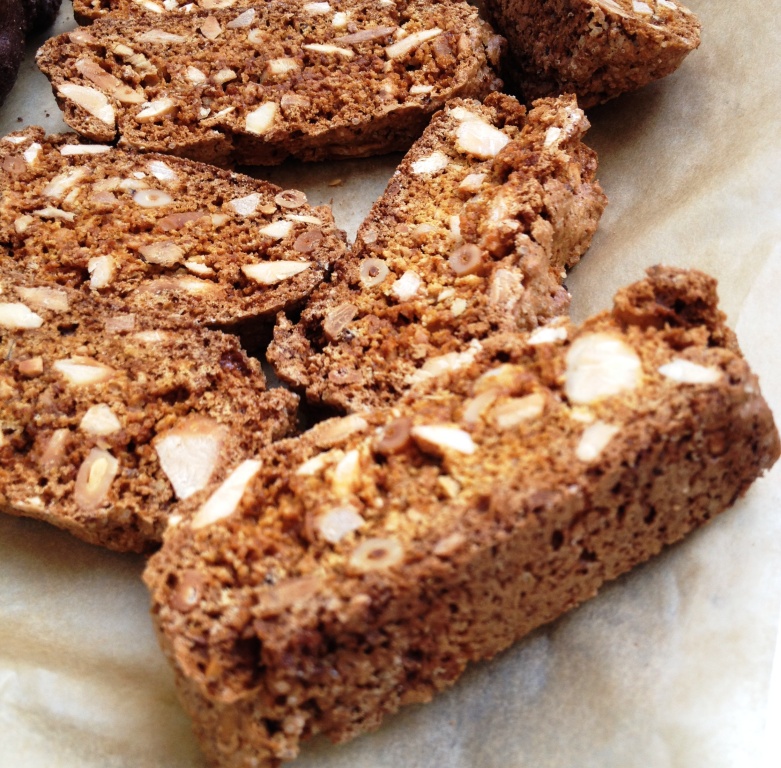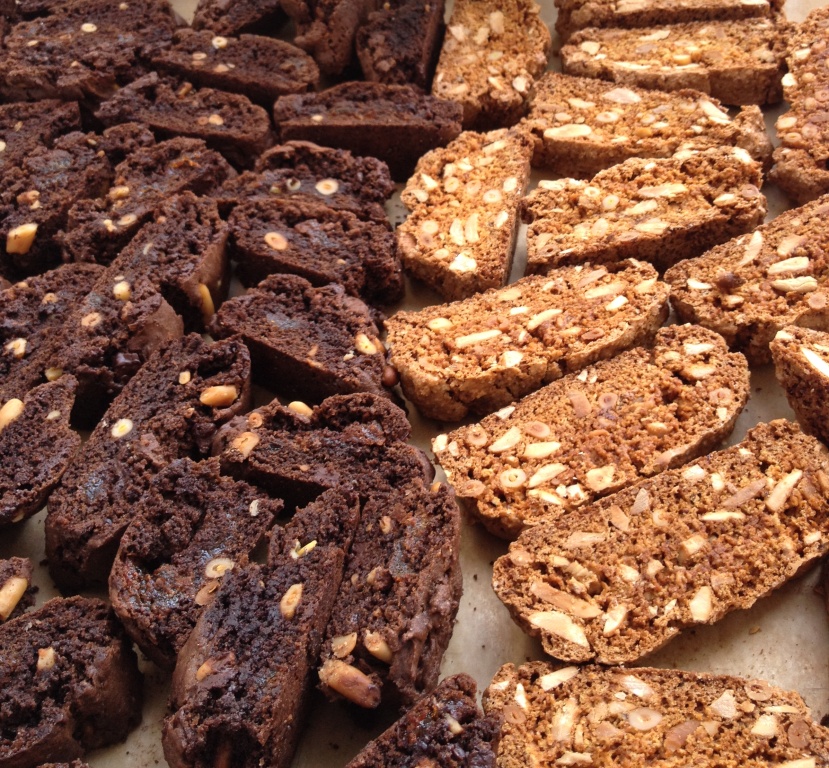 Schokoladen-Olivenöl-Biscotti mit Aprikosen und Pinienkernen