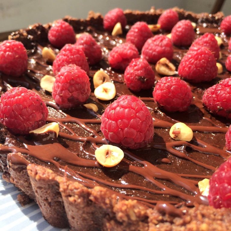 Wanting it all (Superschoko-Tarte mit Haselnüssen und Himbeeren – vegan, gluten- & zuckerfrei)
