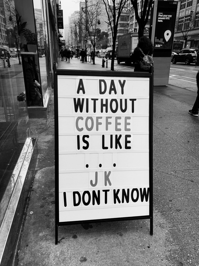 Teil zwei der Behandlung wiederum bringt mich ob seiner gewissen Ironie innerlich erstmal zum Lachen. Wer mich kennt weiß, wie sehr ich Kaffee liebe und dass der Verzicht auf meine tägliche Tasse für mich wirklich hart ist. Ein Tag ohne Kaffee ist ein verlorener Tag. Punkt. Scheinbar wurden meine Gebete aber erhört, denn ich werde, so eröffnet mir meine Therapeutin, ab sofort bei jeder Behandlung einen Kaffee-Einauf bekommen. Ich grinse. Endlich wieder Kaffee! Nur halt aus der falschen Richtung…