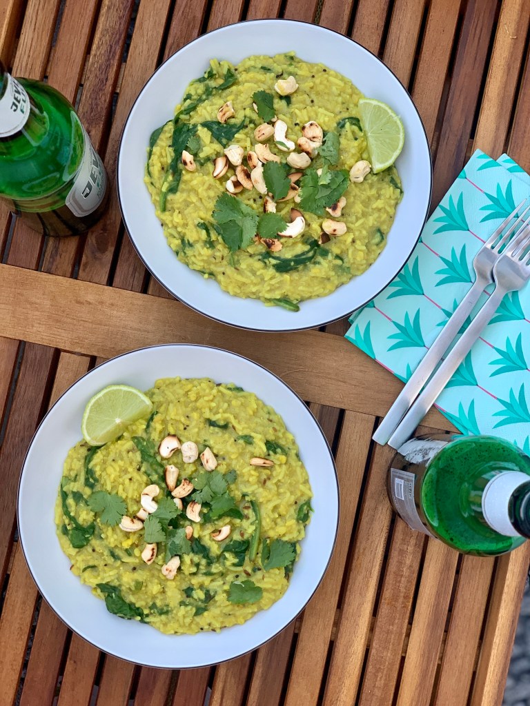 Etwas enttäuschenderweise verspüre ich danach gar nicht so viel Hunger, wie gedacht. Mein Körper signalisiert mir, erstmal ganz leicht und sanft wieder in das Thema Nahrungsaufnahme einzusteigen und so koche ich zum Abendessen ein Kitchari, ein traditionell ayurvedisches Fastenessen aus Basmatireis und Mung Dhal mit wenigen Gewürzen. Dazu gibt es ein bisschen Naan-Brot und mein Freund und ich essen erstmals wieder das Gleiche zusammen auf dem Balkon. Nur unsere Getränke unterscheiden sich noch: Für ihn gibt es Gin Tonic, für mich Fencheltee. Schrittchen für Schrittchen, denke ich mir.