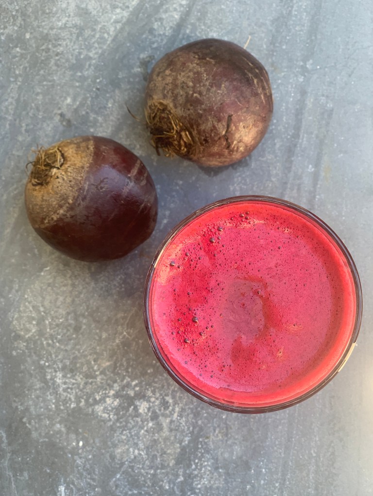 Nach Basenwasser, Lebertee, Spirulina und weiteren Nahrungsegänzungsmitteln gibt es irgendwann das Highlight des Morgens: einen frisch gepressten Rote Beete-Karotten-Ingwer-Saft aus meinem neuen Entsafter, den ich mir extra für die Kur gekauft hatte. Er schmeckt wirklich phantastisch und ich genieße jeden einzelnen Schluck.